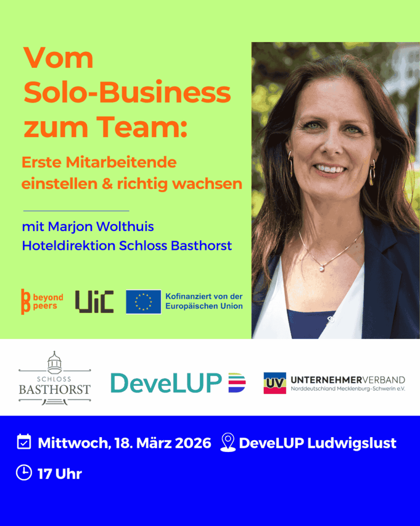 Beyond peers richtet sich an Frauen aus unterschiedlichen Wirtschaftsbereichen in Mecklenburg-Vorpommern, die sich beruflich weiterentwickeln, gründen oder vernetzen möchten. Wir unterstützen Frauen dabei, die richtigen Anlaufstellen in ihrer Region zu finden und bieten eine Plattform, auf der sie sich vernetzen, austauschen und von gegenseitiger Unterstützung profitieren können. Besonders im Fokus stehen Gründerinnen, Gründungsinteressierte, etablierte Unternehmerinnen sowie Frauen in Führungspositionen. Beyond peers fördert aktiv ihre Potenziale und macht Erfolge sichtbar. Männer sind ebenfalls eingeladen, denn wir sind überzeugt, dass Gleichstellung nur gemeinsam erreicht werden kann.