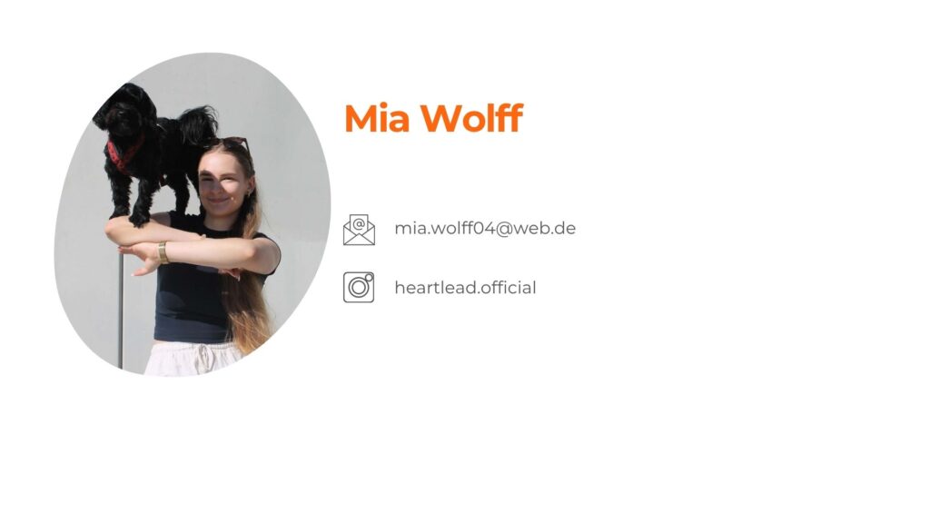 Mit HeartLead verfolgt Mia eine klare Vision: Hundetraining soll wieder das werden, was es sein sollte – eine gemeinsame Entwicklung.
