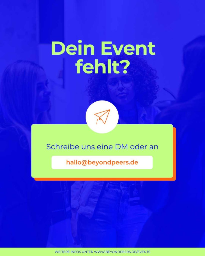 Dein Event fehlt? Dann schreibe uns gleich eine Nachricht an hallo@beyondpeers.de